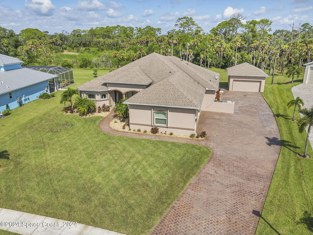 You got to check out this Very energy efficient home with Radiant barrier, a Whole house generator, Buried Propane tank, Solar Panels. this home offers you 2687 Sq.ft. of living space on .86 acres. This much sought after Gated Community of Woodshire Preserve offers you a lot of privacy. Upon entering the decorative double glass doors you get views of the extra-large patio and huge yard that backs up to the preserve. . accordion shutters, Two Master Suites plus a third Bedroom and third Bathroom with a rear door to the backyard with room for a pool. Trey ceilings, roomy master bath, split sinks for him and her. Stainless steel appliances with double oven, Granite counter tops, kitchen island. Large indoor laundry room with cabinets. attach 3 car garage and detached 2 car garage. Tankless water heater, water treatment system and more