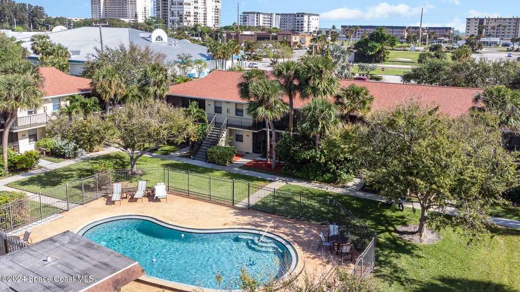 This beautifully updated condo in Highland House offers the perfect blend of beachside living and convenience. With a low monthly association fee of $385, this condo is located just a few blocks from the ocean and minutes from Cocoa Beach's vibrant downtown, restaurants, and shopping. Inside, the condo features an open layout with tile flooring throughout—no carpet in sight. The updated kitchen is perfect, showcasing elegant granite countertops and plenty of storage space. The front screened porch is a peaceful retreat, offering views of the lush tropical landscaping and sparkling community pool. Additional perks include a full-size washer and dryer inside the unit, a reserved parking spot, and ample guest parking. With its proximity to the beach and nearby amenities, this condo is a perfect place for a weekend getaway, seasonal living or choose to stay all year long.
