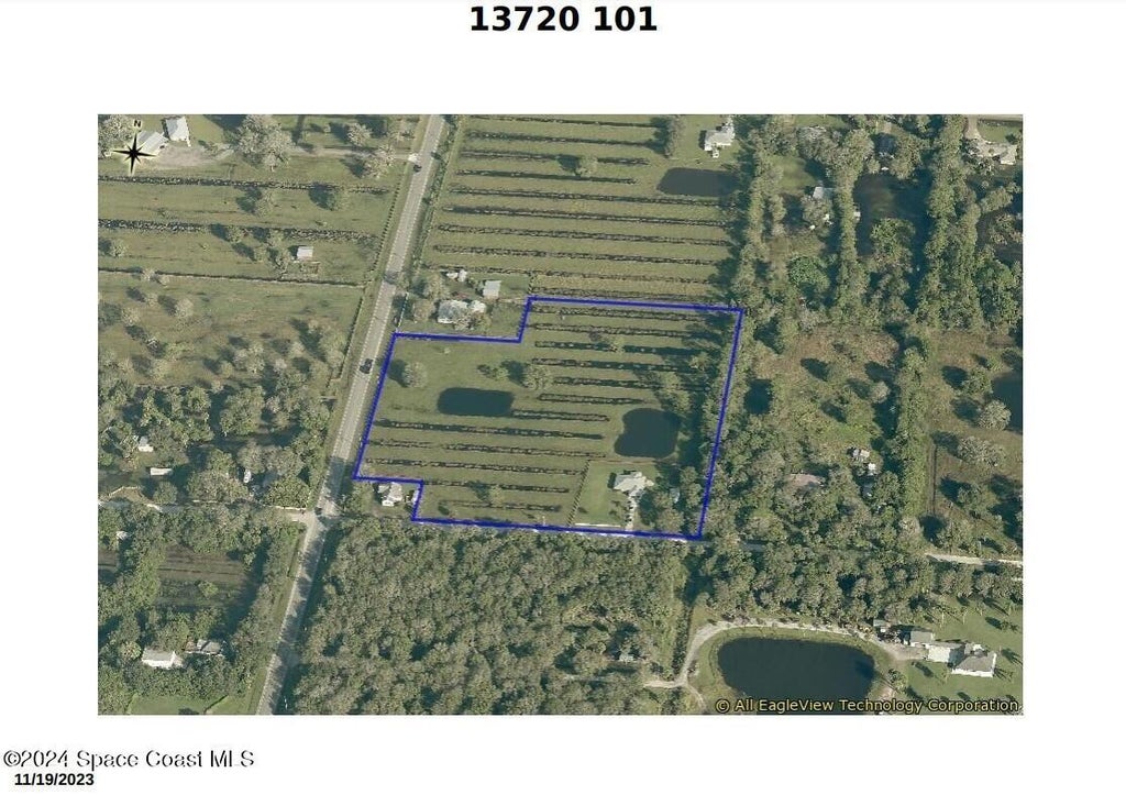 8.11 ACRE Home/Ranch, 3BRM & 2BTH, 2 Car Garage, West side along Babcock Frontage along 101st Street, Separate Workshop 26x15 with Concrete Floor . Totally Fenced, Screened Back Porch, looking at Pond.