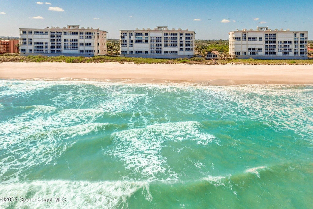 Discover serene beachfront living in this stunning 3 bedroom 2.5 bath condo, boasting 2225 square feet of elegantly upgraded interiors. Enter to direct unparalleled ocean views and the soothing sounds of the waves. Perfect winter getaway with turnkey convenience. Located in prestigious Indian Harbor Beach, this area combines tranquility and amenities alike, with Orlando only 1 hour away. View incredible sunrises and rocket launches from your private balcony overlooking an uncongested pristine beach. Each bedroom and living space whispers the promise of comfort and thoughtful design. Hurricane shutters throughout for extra security and peace of mind. Make this enviable lifestyle yours and start enjoying this beachside haven! INTERIOR FURNSHINGS NEGOTIABLE.