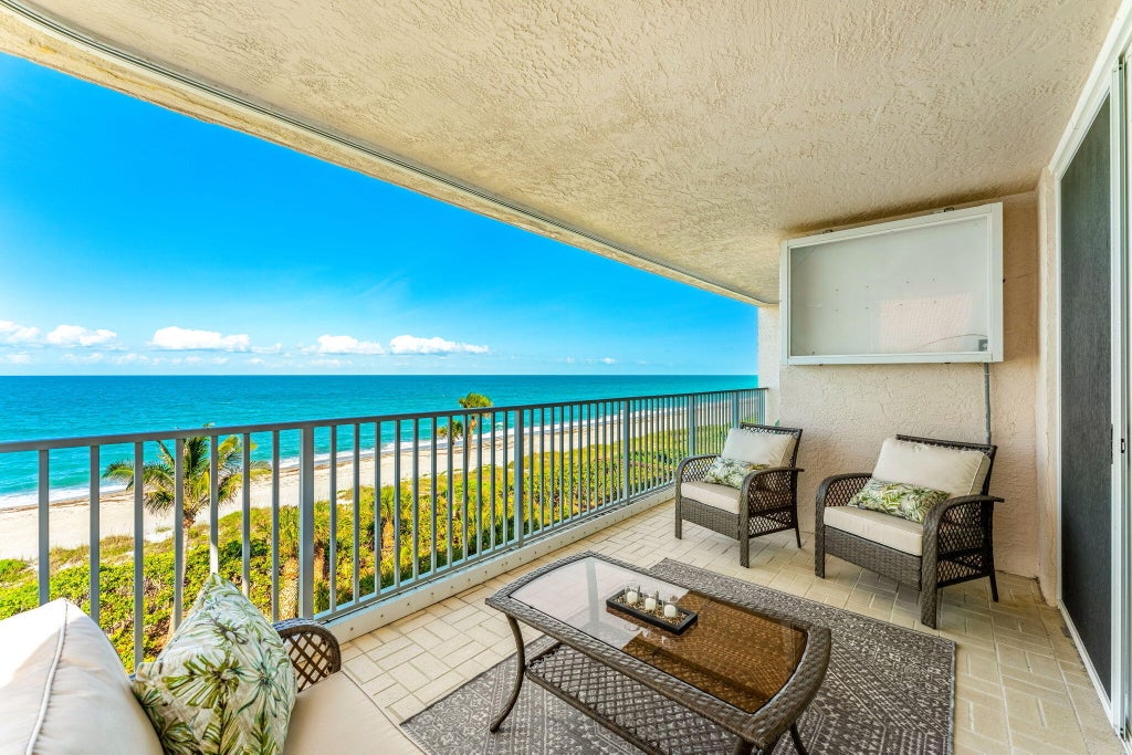 Stunning Oceanfront Residence nestled in Indialantic is remodeled and move in ready~ Incredible opportunity to live in this 5th Floor Northeast Corner Unit Condo with picturesque Direct Ocean views~ Spacious, Luxurious, Peaceful. Beachfront Living at its' very BEST! This unit has it all: Light, bright and open floorplan, updated kitchen and baths w/ custom cabinetry, gorgeous granite, Stainless Steel appliances, tile floors throughout & generous storage. Impact windows & doors, tankless hot water heater, water filtration systems, smart thermostat & more! With over 2000 sq ft including 3 bedrooms/ 2 baths plus a flex room - choose to use it as an office, second dining, game or wine room?! Plenty of space to relax and unwind~ Take in the most beautiful ocean views from your oversized balcony which extends across the Great room and Primary bedroom, Feel secure in a well maintained and managed complex offering Under building garage parking, beautiful pool, direct beach access!