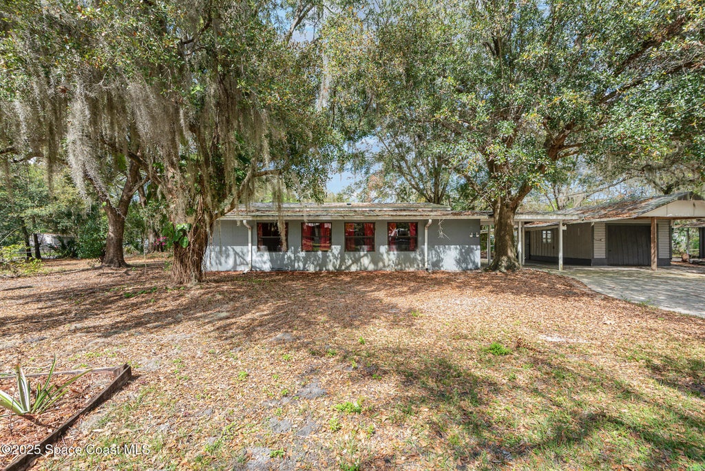 Discover this charming 2-bedroom, 2-bath manufactured home on a spacious 1-acre cleared lot in a prime Mims location! Featuring a newer AC, durable metal roof, and over 500 square feet of porch space, this property offers comfort and relaxation. The fully fenced yard includes a detached garage, multiple carports, and an RV hookup, perfect for all your storage and recreational needs. Conveniently located near I-95, public boat ramps to the St. Johns River and Indian River, and just a short drive to beautiful beaches and the Space Center—enjoy the best of Florida living!