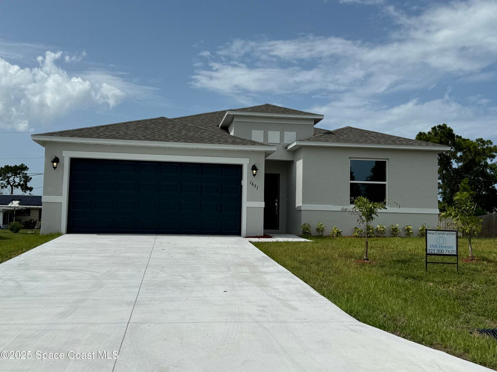 Dream home with city water! Move-in Ready! Brand-new home perfectly blends elegance, comfort, and modern convenience. Designed with durable block and stucco construction, open floor plan features 4 bedrooms, 2 baths, and 1,801 sq. ft. of designed living space. Soaring 9'4'' ceilings throughout home create airy, spacious feel. Enjoy Florida outdoors with 6' x12' covered porch. Stylish 36'' white Shaker-style cabinets complement Ornamental White quartz countertops, adding touch of sophistication to the kitchen. Luxury vinyl plank flooring flows seamlessly throughout entire home, offering both durability and style. A stainless-steel appliance package is INCLUDED, featuring 24.3 cubic foot side-by-side refrigerator, built-in ice maker, 30'' freestanding smooth-top electric range, 1.6 cubic foot over-the-range microwave, dishwasher - everything needed for fully equipped kitchen! For added peace of mind, your purchase includes 2-10 Builder's Warranty. NOTE: Photos for example purposes only