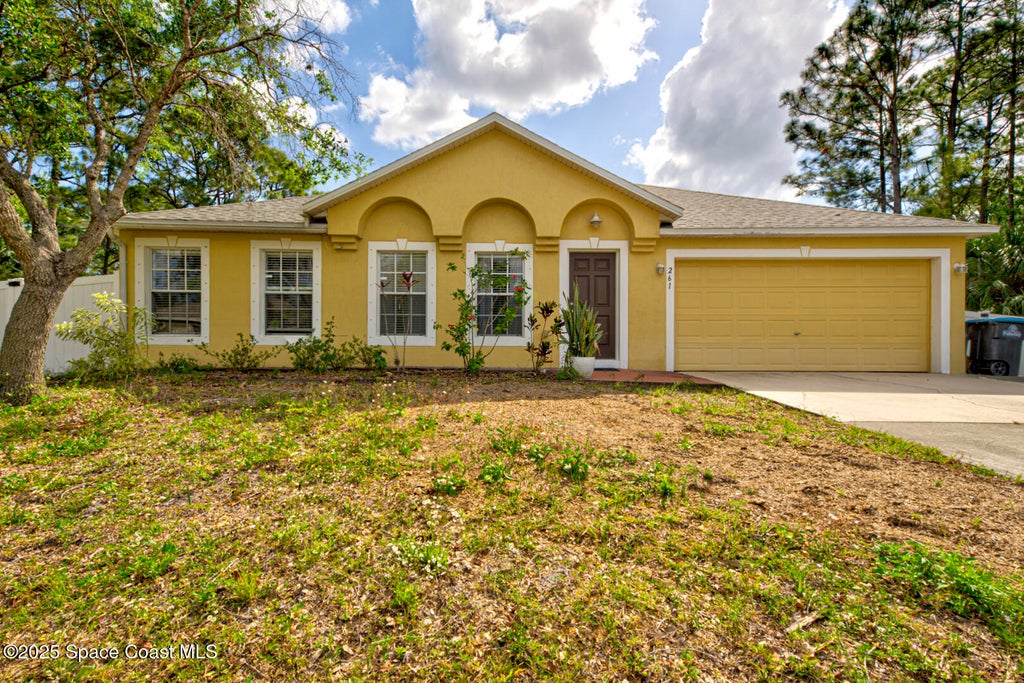 This charming home offers a split plan featuring 3 bedrooms and 2 full bathrooms with 1,932 sq ft of living space. The heart of the home is the gorgeous kitchen equipped with double pantries, a large central island, soft-close wood cabinets, and granite countertops. The spacious primary suite boats two walk-in closets and an ensuite bathroom with separate walk-in shower and soaking tub. A formal living room in addition to the family room provides plenty of space for entertaining. Or you can relax outdoors in your screened porch overlooking a large peaceful backyard, fully fenced with fruit trees! Additional features include a newer roof (2023), AC (2016), Tankless water heater (2017), Aerobic septic, water softener system, and storm shutters. Predator 9000 watt portable generator conveys!
