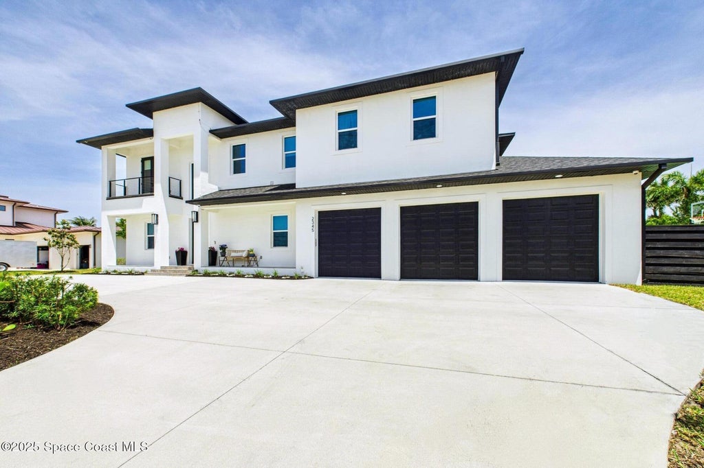 THIS 2022 contemporary is a STUNNER - she offers sky-high ceilings, marbled tile floors, and a dramatic stacked stone fireplace in a sunlit great room. Sliders open to a fenced backyard, covered lanai, and summer kitchenâ€''perfect for indoor/outdoor entertaining. LED lighting throughout home = SMART living. The sleek kitchen showcases quartz countertops, Bosch stainless steel appliances, a gas range, prep sink island, and breakfast bar. The first-floor owner's suite is a serene retreat with dual walk-in closets, tray ceiling, stand-alone tub, quartz vanities, and a tiled shower with bench. Upstairs, a spacious loft, six bedrooms, a dual-sink bath, two balconies, and a fully equipped laundry room offer ample space for family and guests. Stylish design, modern comforts, and coastal living combine beautifully in this exceptional home.