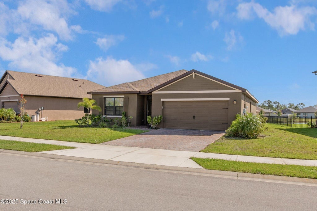 It is a spacious lake view 4-bedroom 2-bathroom single house located in gated community Cypress Bay Preserve. Close to 95 and Babcock St, the brand new Publix already opened, walking distance to elementary school, convenience and spacious for family. It is extended Cali floor plan, it is hard to find the big open design later. Granite countertop in kitchen and tile in the extended and open designed living area, ceiling fans in all bedrooms and living room, 2 car garage. It is a great chance for the 1st time buyer to build their own home.