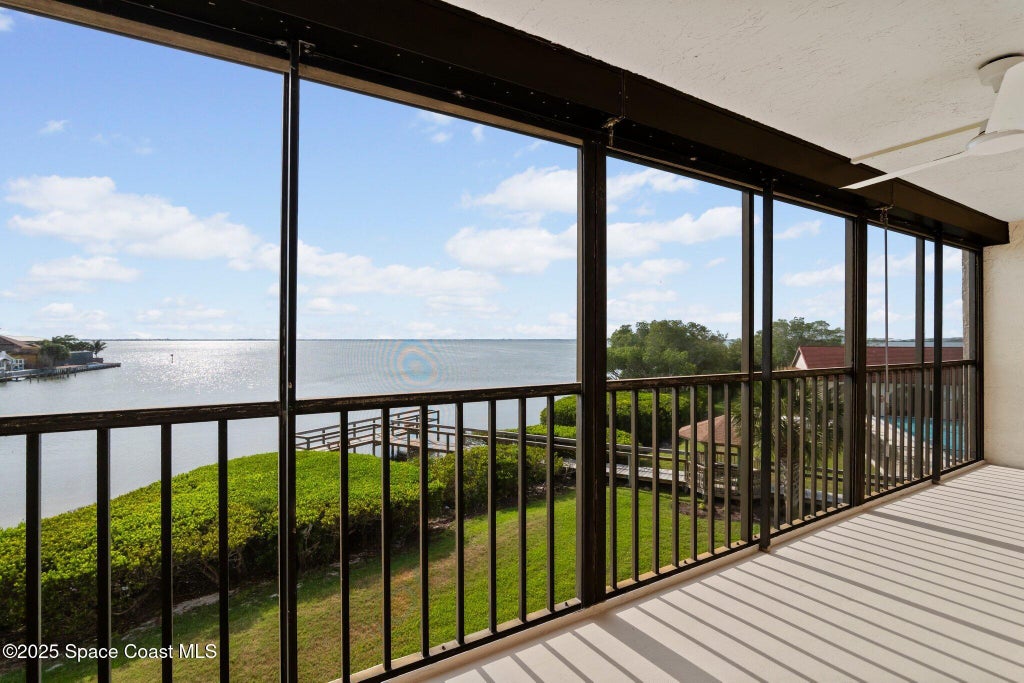 Wake up to breathtaking Banana River views in this spacious 2 bed, 2 bath condo offering over 1,300 sq ft of living space! Enjoy water views from the moment you enter, flowing through the living room, kitchen, and dining area. Step onto the expansive balcony to take in stunning sunsets and spectacular launches over the river, with views of the pool and private beach access below. A community deck over the water invites you to relax or watch for dolphins. The unit includes roll-down hurricane shutters and a private garage conveniently located directly across from the front door. Inside, you'll find newer appliances and a new roof. Amenities include a clubhouse, two swimming pools (one heated), two lighted tennis courts, 1 pickleball court, 1 shuffleboard court, and a sauna. With incredible views and a solid foundation, it's ready for your personal touch. A brief walk to the beach, restaurants, and entertainment—don't miss this rare opportunity to own at Costa Del Sol!