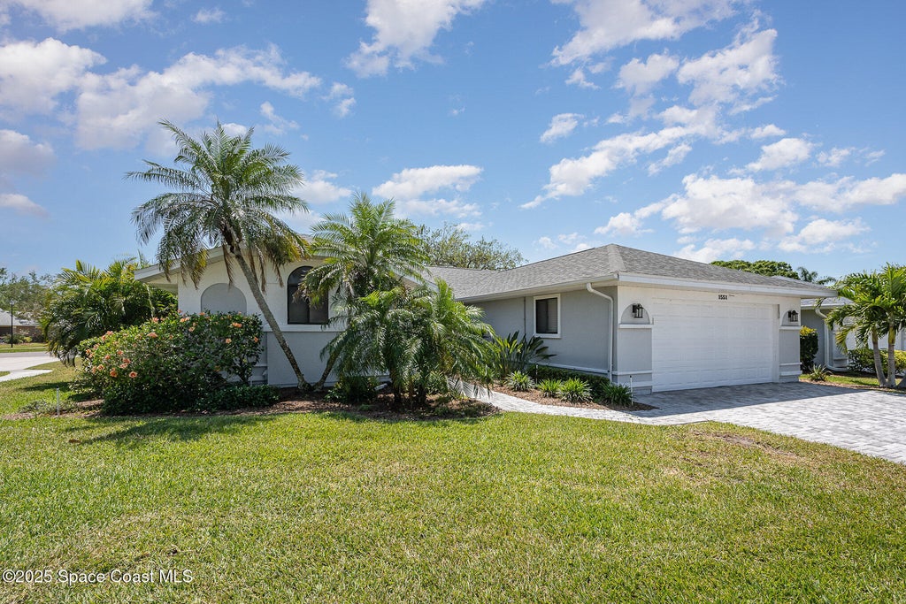 Gorgeous paver driveway and lush landscaping greet you as you arrive at this lovely, expanded Madison Model, located in a resort-style country club community, offering top-notch amenities for an exceptional Florida lifestyle. Vaulted ceilings, bright open floor plan, indoor laundry, updated bathrooms, modern fans and light fixtures, make this home move-in ready. Bonus room attached to the large owner's suite makes an ideal, private office or a place to relax, curl up, read a book, or enjoy your favorite hobby. There are sliding glass doors that lead to the lanai from the bonus room and living room. Guest bathroom also has access to the spacious screened lanai. Home includes an open air atrium, great for combining open space, natural light & the potential for a unique & inviting garden, or space for relaxation, and enjoying your morning coffee. Home to over 600 Military Veterans, Indian River Colony Club is a Private 55+ Country Club community with an extensive maintenance program for each home. It includes an18-hole golf course, fine dining restaurant with an executive chef & the 19th Hole restaurant and bar, fitness center, heated swimming pool, tennis courts, croquet, bocce ball, shuffleboard, and more. Pet-friendly, gated community with over 60 activities groups that have you feeling like you are on vacation.