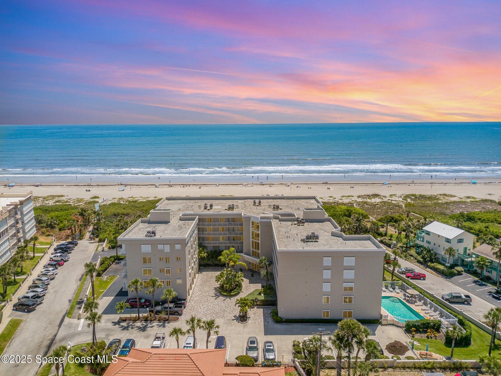 The best price per square foot on the ocean—this 3-bed, 2-bath split-plan beachfront condo offers unbeatable value with direct beach access and breathtaking views from your private balcony. Concrete restoration was completed in 2024, giving added peace of mind. Just a 2-minute walk to the sand, it's perfect for morning strolls, sunbathing, or watching rocket launches. Inside, the split floor plan provides privacy and flexibility, while NEW impact-resistant sliders fill the space with natural light and frame stunning ocean views. Move-in ready and spacious, this home is ideal for full-time living or a vacation getaway. Community amenities include a heated pool, updated recreation room, and deeded garage parking. The complex has been freshly painted and updated with new railings for both safety and curb appeal. Close to Kennedy Space Center, Port Canaveral, Orlando attractions, and local dining, this condo delivers the best value on the beach. Concrete restoration was completed in 2024.