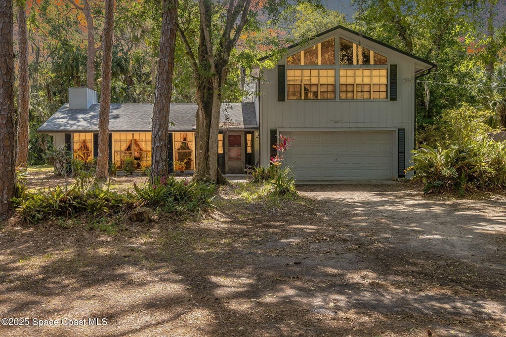 3 acres with 2 stall barn and fenced pasture for horses on this beautifully wooded property on north Merritt Island. You will enjoy the peace and quiet. This flag lot property boasts spacious 3 bedroom 2.5 bath home with 2 car garage. Large downstairs living area with vaulted ceilings, fireplace with oak wood walls and high beams make you feel you truly are living in the woods. Kitchen features oak cabinets with granite countertops. Den/office off the kitchen could function as 4th bedroom. Interior laundry. Upstairs master has large windows for lots of light and a fireplace for those cool nights. Large screen porch looks out to the horse pasture. 2 stall horse barn with electric and fans. Large fenced pasture. Roof approximately 3 years old, water heater 4 and septic replaced in 2007. Stop and see this property today!!