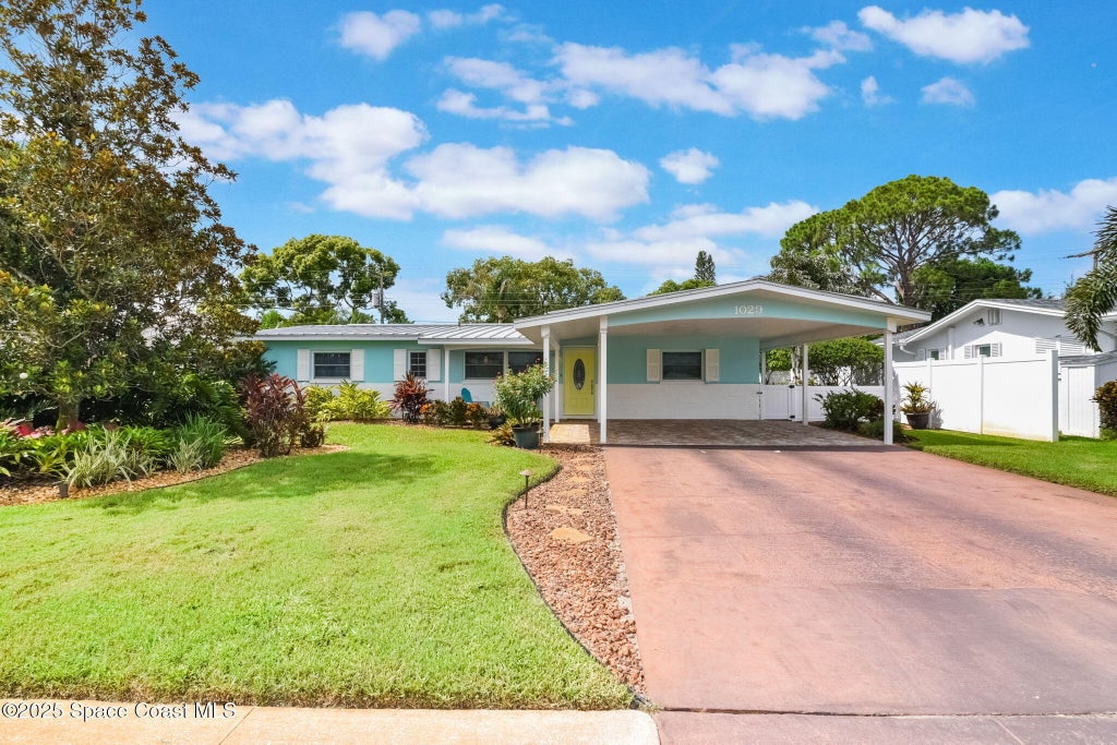 72 HOUR KICKOUT CLAUSE Tucked behind Bermuda shutters and under a metal roof, this updated ranch offers warmth, space, and surprises. The 2015 kitchen gleams with granite counters and white cabinetry, while 2021 flooring and a 2019 hall bath refresh add polish. A central bonus room with glass wall and fireplace invites creative use—media, office, or play. Outside, enjoy a screened porch with Spanish tile, a deck, and a serene side garden with shed and dog house. Vinyl privacy fence, revived irrigation, and attached carport complete the package. Don't delay! Schedule your exclusive showing today!