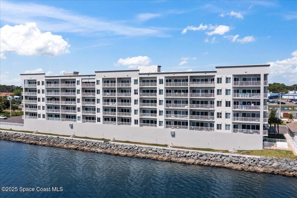 Experience breathtaking, front-row views of the river and rocket launches from this barely-lived-in, modern 3-bedroom, 2-bath condo. Built in 2022, this direct riverfront residence offers a rare blend of contemporary comfort and coastal beauty. Step inside to find an open, airy layout finished with oversized tile throughout. The kitchen and bathrooms feature high-end granite countertops, rich wood cabinetry, SS appliances and quality finishes designed for both style and function. Relax on your private balcony with a cup of coffee and prepare to be amazed and entertained as you watch the dolphins and manatee frolicking in the river below. Enjoy New York plays at the Titusville Playhouse and dine in Historic downtown area. A new shopping center is under construction just miles away. With a 1-car garage under the building, your vehicle stays protected while you live the riverfront lifestyle to the fullest. Secure private lobby and community pool to enjoy.