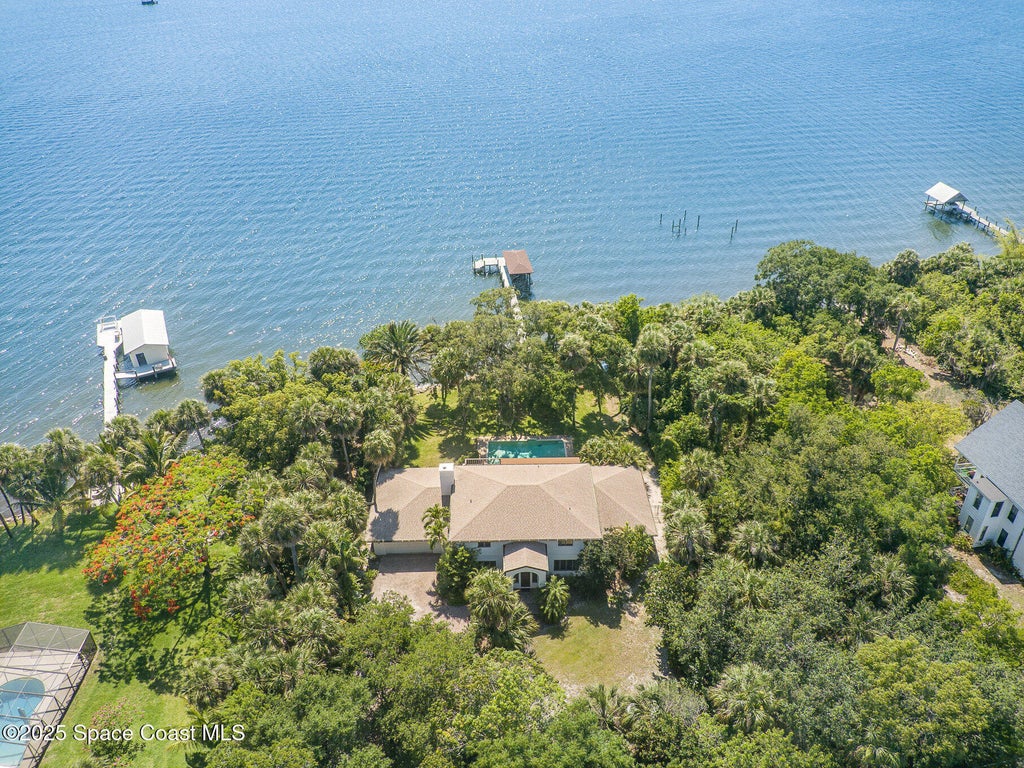 Welcome to 4137 Crooked Mile Road, featuring entry privacy that only a decades old mature oak canopy provides as you approach the panoramic vista of the Indian River. This peaceful home encompasses 5 true bedrooms and an office, plus a fantastically flexible floorplan. Abounding Intracoastal Waterway views, extreme privacy, mature oversized trees and everything that South Tropical Trail has to offer complete this exceptional offering. Primary suite includes relaxing soaker tub and balcony views of the Indian River sunsets. Roof new in 2019; new water heater 2025; new kitchen appliance suite 2023; new pool heater 2023; new carpet and flooring throughout 2025; interior paint 2025 and exterior paint 2021; electric remote porch screens; termite bond; home warranty plan. The condition of this home and the rare setting are pristine and the sellers can provide immediate move in for a well qualified buyer.