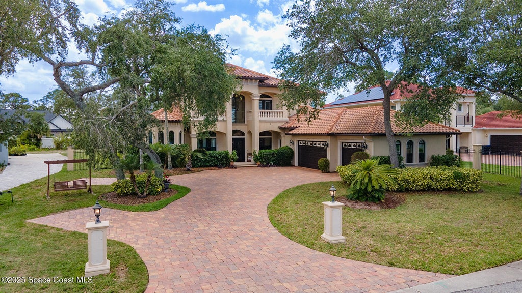 STUNNER! RIVER ACCESS! 4/5/3 Custom built pool home! Featuring Saltwater pool/spa w/ waterfall, fire rings & RGB lighting. PGT Storm Guard impact windows 12' tray & coffered ceilings, spray foam insulation. Large 90 degree pocket sliders for entertaining. Large family room w/fireplace. Oversized gourmet kitchen, butler pantry, huge center island, granite countertops, Solid wood cabinets & high end appliances. Travertine & Brazilian Cherry wood flooring throughout. 4 bedroom suites w/own bathrooms! Master suite on first floor with gorgeous master bath and his/her vanities. All custom design. 2nd floor entertainment/theater room & kitchenette.. Private access to a 200' dock across the street. This home has all the curb appeal and so much attention to detail! A superb opportunity to own a piece of Heaven right here on the SPACE COAST ! A perfect way to enjoy the space launches & sunsets right from your own front balcony! All of this in the luxurious Gated community of Hidden Creek!