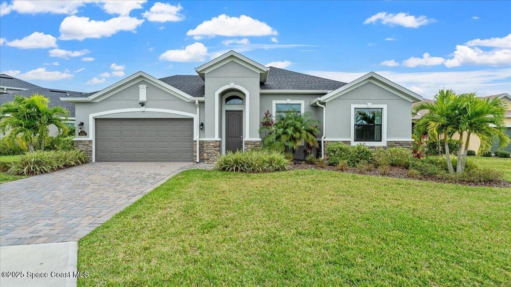 Located in the highly desirable golf cart community of Addison Village in Viera, this newer built home is ready for its new owners! Ideal for a larger family, it includes 3 bedrooms PLUS a flex space that's perfect for an office or 4th bedroom! Large tile floors throughout the home make for low maintenance with the kids and pets and NO carpet to clean! The open concept main living area is ideal for family gatherings and entertaining friends. A large island is the focal point of the main area along with the light quartz countertops, tile backsplash, stainless appliances, high ceilings and a coffee bar! The primary en-suite has a large walk in closet, dual vanities, soaking tub, walk in shower, and a private water closet. The indoor laundry has added cabinets, countertops and a utility sink! Wrought iron fencing fully enclose the backyard with a gate to exit to the walking path and pond, and the covered, screened lanai allow you to watch the kids or dogs play with peace of mind. Hurricane proof windows, and/or shutters, newer roof, AC and water heater keep insurance rates lower. Home includes a water softener and alarm systems. A low HOA includes lawn care, sprinklers and amazing amenities including pools, clubhouse, trails, playground and more! An excellent location and close to top rated schools, dining, all the shopping you want, I 95, Orlando, beaches and The Space Center and Space Force Base.