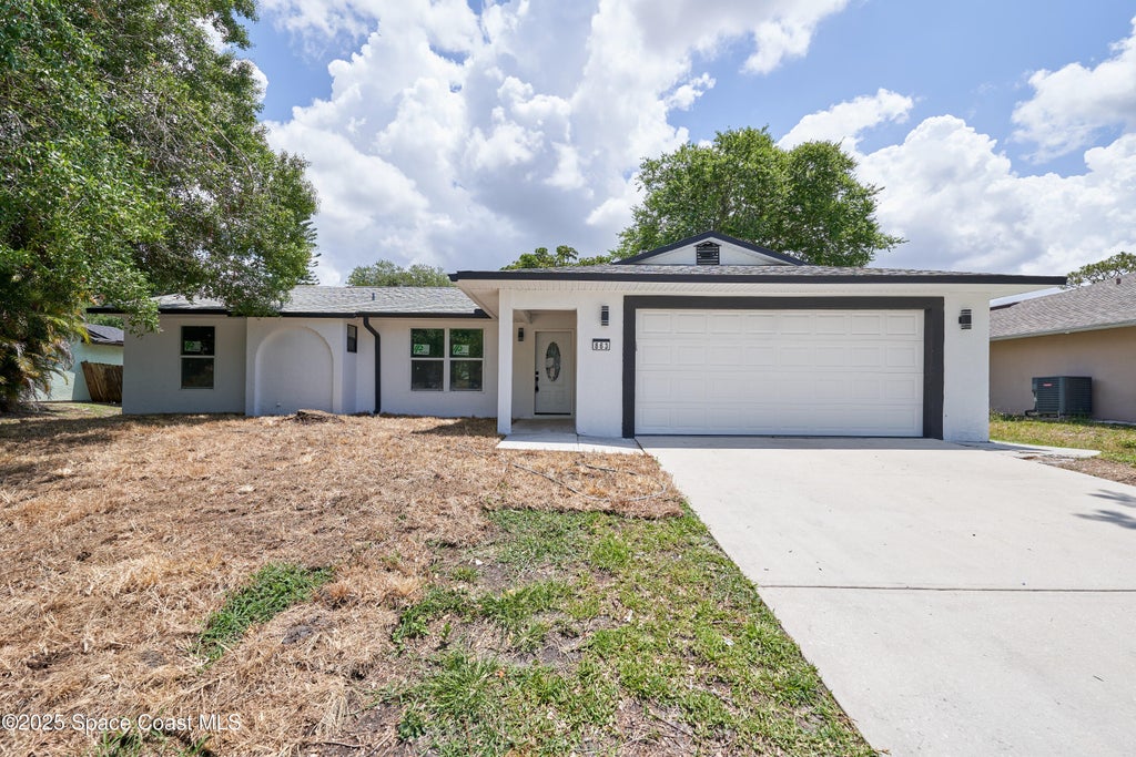 Step into comfort and style in this fully renovated home nestled in a quiet, residential area of Palm Bay. Featuring 3 spacious bedrooms, 2 beautifully updated bathrooms, and a versatile home office, this property offers the perfect blend of modern upgrades and functional living. From the moment you walk in, you'll notice the fresh feel of new flooring, the soft neutral palette, and the abundance of natural light that flows through every room. The kitchen is a showstopper—completely remodeled with brand-new cabinetry, contemporary countertops, stylish backsplash, and stainless steel appliances ready for your first home-cooked meal. Whether you're hosting guests or enjoying a quiet dinner at home, the open layout connects the kitchen seamlessly with the living and dining areas, making it ideal for entertaining. The primary suite provides a private retreat with a remodeled en-suite bathroom that feels like your own spa—modern tile, sleek fixtures, and clean design. The additional bedro