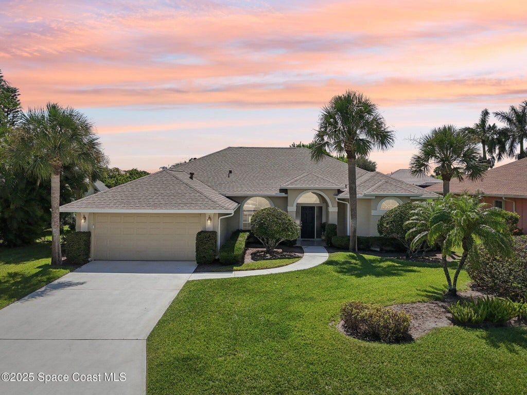 MUST SEE - Suntree Pool Home with Golf & Water Views | NEW ROOF 2025 | Outdoor Oasis! Tucked away near the end of a quiet cul-de-sac, this stunning pool home offers nearly 1,800 sq. ft. of light-filled living space with golf course frontage and tranquil water views. Set in a lush tropical landscape, it's the perfect blend of comfort, privacy, and Florida lifestyle. The open, airy floorplan features wood and tile flooring throughout the main areas, a bright kitchen with cozy eat-in nook, and serene views of the sparkling pool from multiple rooms. Step outside to your private screened lanai, where mature landscaping frames your own backyard retreat—ideal for relaxing or entertaining. Recent updates include a NEW Roof (2025), A/C unit (2022/2024), new garage door opener (2025), updated garage door, and sprinkler system. LOW HOA. All this, just minutes from shopping, dining, Patrick Space Force Base, and the beaches. Don't miss this peaceful gem in Suntree! Call today!
