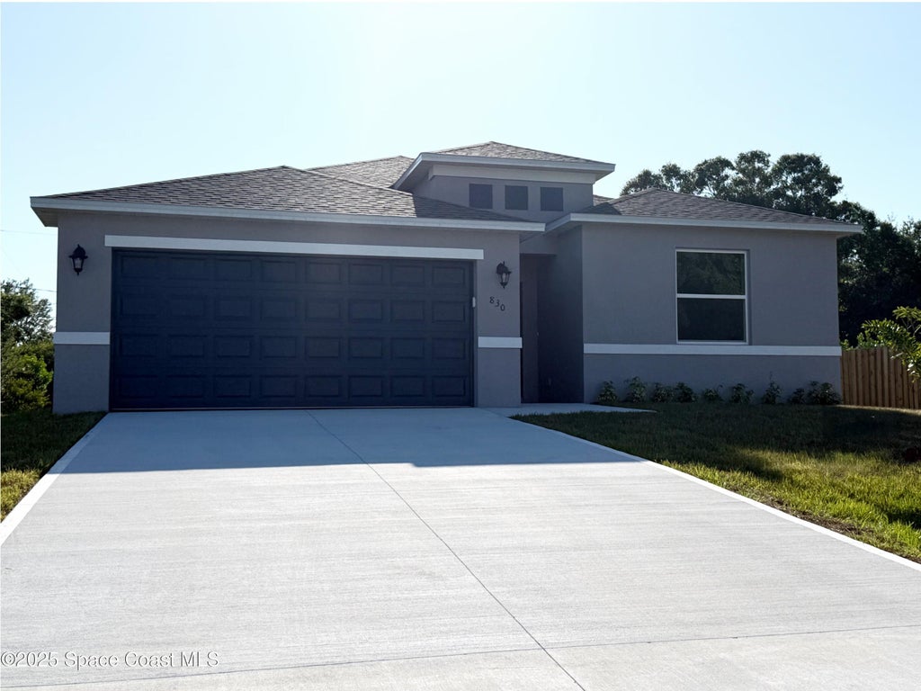 MOVE-IN READY! City Water! Brand-new home offers the perfect blend of elegance, comfort, and modern convenience. Designed with durable block and stucco construction, open floor plan features 4 bedrooms, 2 baths, and 1,801 sq. ft. of designed living space. Soaring 9'4'' ceilings throughout home create an airy, spacious feel. Enjoy Florida outdoors with a 6' x12' covered porch. The stylish 36'' white Shaker-style cabinets complement Pauline Grey quartz countertops, adding a touch of sophistication to the kitchen. Luxury vinyl plank flooring flows throughout entire home, offering durability and style. A stainless-steel appliance package is INCLUDED, featuring a 24.3 cubic foot side-by-side refrigerator with built-in ice maker, 30'' freestanding smooth-top electric range, 1.6 cubic foot over-the-range microwave, and dishwasher - everything needed for fully equipped kitchen! For added peace of mind, your purchase includes 2-10 Builder's Warranty. NOTE: Photos are for example purposes only.
