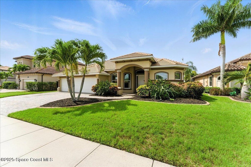 Welcome to this beautifully maintained and thoughtfully upgraded executive pool home in the coveted gated community of Levanto, Viera, where family-friendly living meets refined Florida luxury. From its timeless finishes to its extensive list of updates, this pool home reflects meticulous care, offering five spacious bedrooms, three full baths and a three car garage. Step into the foyer to discover soaring coffered ceilings, abundant natural light, and a flowing, airy layout that immediately feels like home. A flexible front room with French doors can serve as an office, den, or fifth bedroom, while the primary suite feels like a spa-inspired retreat, complete with a tray ceiling, serene pool views, and a spacious ensuite bathroom featuring an oversized walk-in shower, soaking tub, and two walk-in closets with custom storage systems. The well-designed split floor plan ensures privacy for family and guests, with two bedrooms sharing a full bath on one side of the home, and a separate back bedroom with a full bath conveniently located nearby with access to the patio. At the heart of the home, the kitchen is a true standout, featuring granite countertops, newer stainless steel appliances including an induction cooktop, quality wood cabinetry, a walk-in pantry, and ample counter space for meal prep and gatherings. The kitchen seamlessly opens to the bright, airy living room and breakfast nook overlooking the pool and patio, creating the perfect space for entertaining. Step outside to your private backyard oasis, where a screen-enclosed, heated pool offers year-round enjoyment, surrounded by a paver patio, lush landscaping, and a fenced backyard. The attention to detail and thoughtful extras throughout make this home truly move-in ready, with plantation shutters, an Arlo doorbell camera, wireless security cameras, patio surround sound speakers, a robot pool vacuum cleaner, a newer washer and dryer, and an EV car charger with 220V outlet in the garage all included for your convenience and peace of mind. Beyond your private retreat, residents of Levanto enjoy access to the amenities of Eastwind and Westwind Parks, including a community pool, basketball and tennis courts, and playgrounds. All of this is nestled within a family-friendly community with top-rated schools, just minutes from Viera's vibrant shopping and dining, and only a 30-minute drive to the beautiful Space Coast beaches. If you've been searching for a meticulously cared-for, move-in-ready home in one of Viera's most desirable neighborhoods, this is the one. Schedule your private showing today and experience firsthand the perfect blend of luxury, comfort, and the Florida lifestyle.