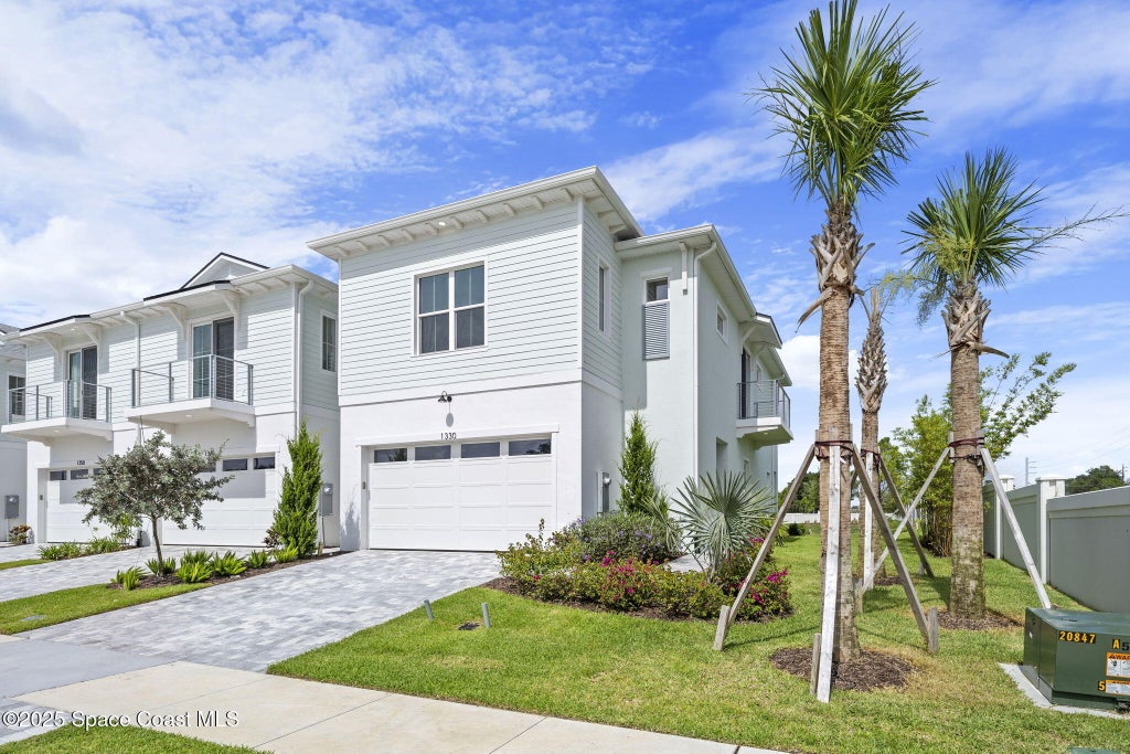Corner Unit Model Townhome! Partially furnished, extended patio w/ view of pond and soon the pool. Solid concrete with 3 layers of sound barrier/insulation units between walls & floors, 10' ceilings on both floors, Impact windows & sliders, 8' six panel doors, quartz countertops, premium flooring and quality cabinetry. W/ 2000+ square feet of living space including 3 bedrooms, 2 full baths, main level 1/2 bath, upstairs flex space, large laundry, two car garage w/ 2 EV plugs, paver driveway, and huge both stories closet that can be upgraded to an elevator (upgrade).This gated community features low HOA dues that cover landscaping, exterior maintenance, ROOF, irrigation, trash, insurance, and management. An opportunity to lease 1 of the 6 boat slips at the community dock that features a kayak launch, fishing platform which is nestled behind a conservation space. The pool & cabana are in process and extensive landscaping planned. Located