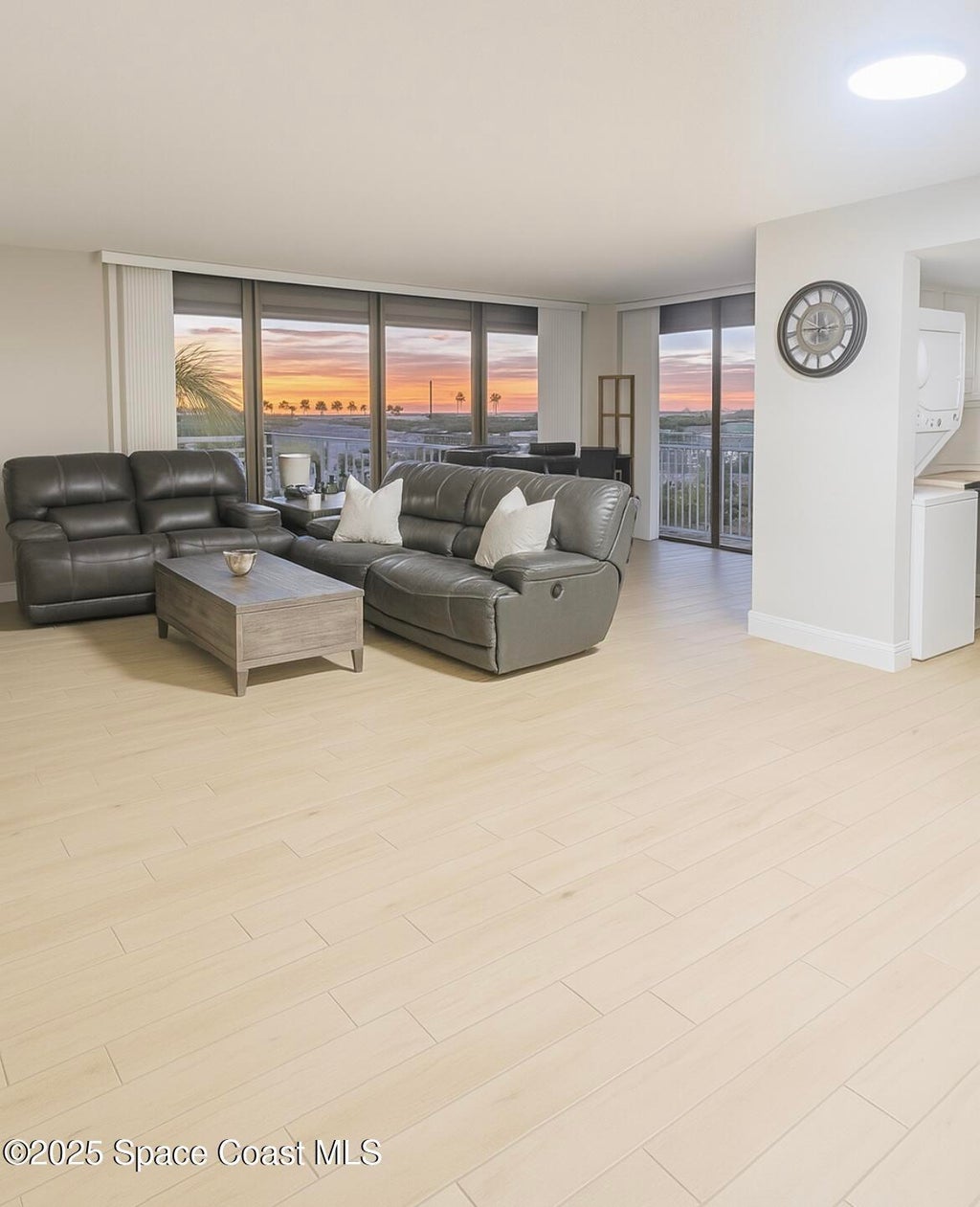 Priced to sell! Listed 50K below-Bright and breezy furnished corner unit at The Villager offers the best of coastal living with panoramic ocean views, a 400 sq. ft. wraparound balcony, the best view of rocket launches, sunrises, and sunsets. Fully turnkey this spacious 2/2 condo w/enclosed garage, open-concept, large primary suite, walk-in closet and large soaking tub. New Stainless and granite kitchen Guest bedroom w/sweeping ocean views. Full-time residence or an stress-free getaway, this unit delivers effortless luxury and convenience. Pet-friendly oceanfront community with resort-style amenities, includes largest pool on the beach, outdoor grills, party room w/ kitchen, pool table Over $1 million in Reserves, New Roof 2024, this well-maintained building offers peace of mind and long-term stability. HOA fee covers WATER, cable, internet, and building insurance, making ownership simple and predictable. Just steps from Publix and local shops. Maintenance free living. Bring Offers!