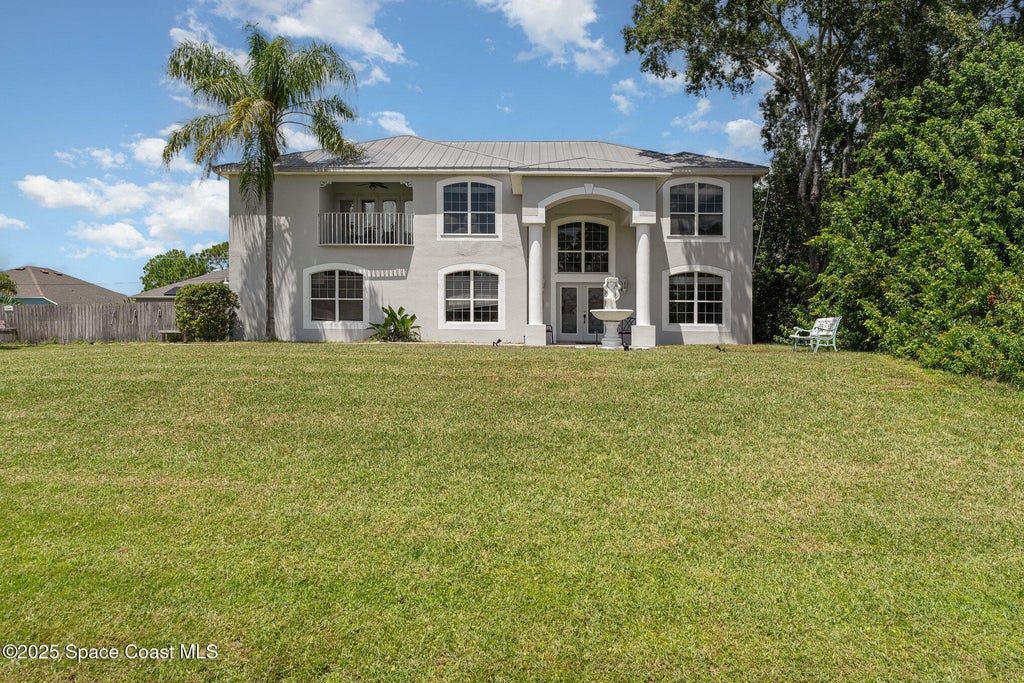 Sprawling 3 lot property, almost ¾ of an acre in the heart of SE Palm Bay that includes 2 buildings and a beautiful pool. The first building is approximately 3400 sq ft two story 5-bedroom 3.5 bath, converted 2 car garage. The first floor has an updated kitchen, mother-in-law suite, office area, living and dining rooms. The second floor has the master bedroom, 3 guest bedrooms and 2 full baths, a huge den, or media room. The master suite is grand with French doors that lead to the balcony to overlook your empire. The accessory building is approximately 1450 sqft and is being used as a man cave/game house or can be used as a workshop. The accessory building was designed to be a 3-bedroom, 2 bath guest house, place for aging parents or as a rental. There are lots of possibilities with this property! Come take a look!
