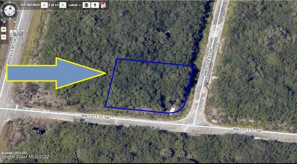It's an Oversized 0.32 acre **Corner** residential investment property available in Port Malabar Unit #53 of Palm Bay, Brevard County. This property, which is near the famous Compound area and the Palm Bay Parkway Extension, has road access but does not have any utilities at the present time; so the lot and the area are not buildable right now. Directions are as follows - From Exit #176 of I-95 go west on Palm Bay Road NE. Turn left on Minton Road and proceed south for 3.3 miles. turn right on Jupiter Boulevard SW and left on Degroodt Road SW. Proceed south for 2.5 miles and turn right on J.A. Bombardier Boulevard. Proceed west for for 1.4 miles and turn left on Sapodilla Road SW, left on Facet Lane SW and right on Andicola Avenue SW. Right.