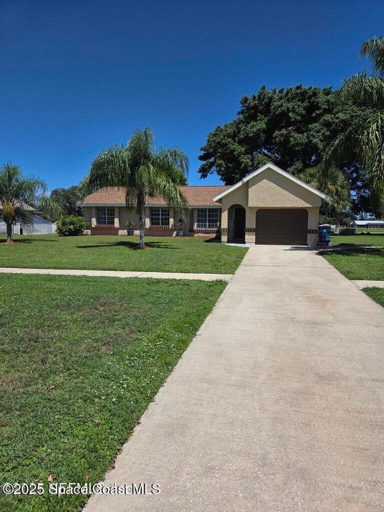Move in ready home in desirable area of Palm Bay. Home has been updated through out with new wood floors, carpet in bedrooms, updated baths, kitchen, newer appliances, new electrical panel box, roof is under 2 years old, sprinkler system, new garage opener, new coating on garage floor, new paint throughout interior and exterior. Home has 3 bedrooms 2 full baths, separate dining area, a family room and a large bonus room. You have a screened porch in rear of home. There is 1724 SF of air-conditioned space. New PVC fence going up at exterior of property for privacy. Must see to appreciate!
