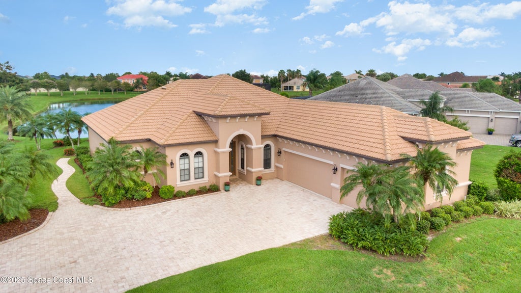 This Gatwick Manor waterfront home exemplifies elegance, offering the rare combination of coveted location, pristine condition, exceptional upgrades, and a price aligned with true value. 3 Beds, 3 Baths, Office, oversized 3-car garage and driveway, tile roof, porcelain tile floors, and more.. From the moment you arrive, the curb appeal sets the tone for what awaits inside-an inviting blend of comfort, elegance, and Mediterranean design. Enjoy your evening beverages on the covered lanai watching the sunsets over the water! Soaring tray ceilings, open-concept design flows effortlessly into the great room and dining areas, where walls of glass invite in natural light and picturesque views. The gourmet kitchen is a chef's dream, featuring solid oak cabinetry, and spacious granite countertops for prep and casual dining. Relax to the luxurious and large primary suite, complete with spa-inspired bath, walk-in closets, and vanities. Amenities include pool, pickleball, tennis, basketball A/C is 2019, Tankless Water heater, and natural gas is plumbed for inside and outside!
