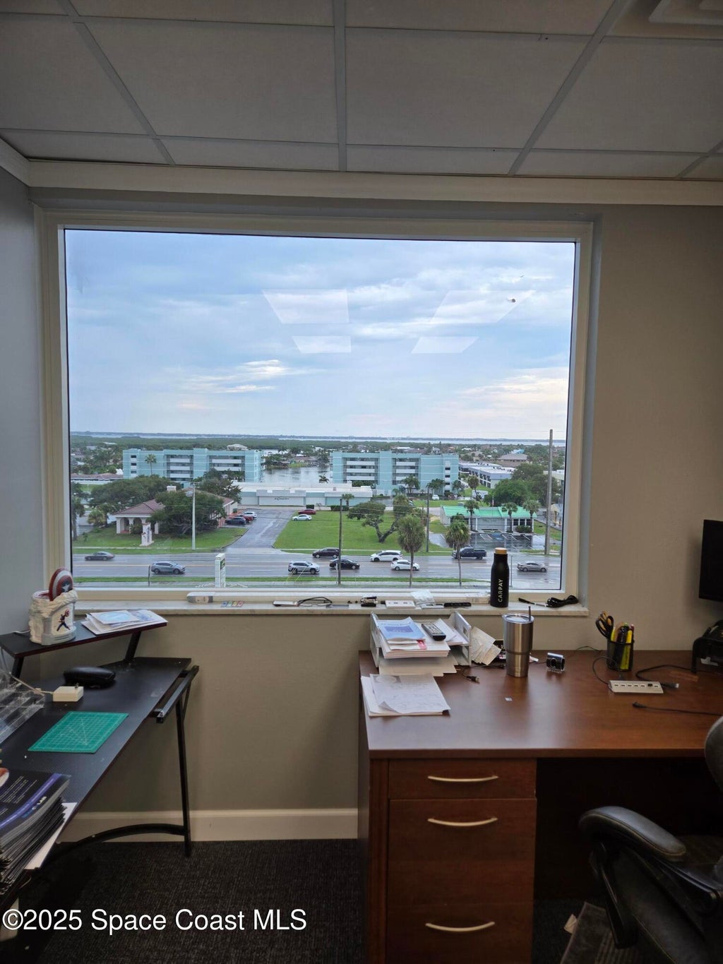 Newly remodelled office with panoramic views of the Banana River. Waiting area or Assistant office in front, and large open office in back with a door between offices. Come furnished and includes high speed internet, electric and water in rent. Access to small break room with microwave, refrigerator with sink. Building has plenty of open parking in front and back, and is easy to find. No residential use as per association rules. 6-month minimum lease. Listing agent/broker is owner.