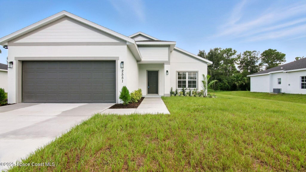 New Construction with Warranty. Modern and Versatile! Discover the convenience and charm of new construction in Palm Bay. This thoughtfully designed single-story floorplan features a bright and airy living space that opens to the kitchen and dining areas, ideal for entertaining or casual gatherings. The private primary suite includes a large walk-in closet, dual vanity, and tiled shower, while two additional bedrooms provide flexibility for your lifestyle. Upgraded finishes include quartz counters, stainless steel appliances, and laminate flooring. Relax outdoors on your covered lanai and enjoy peace of mind with a full builder's warranty.