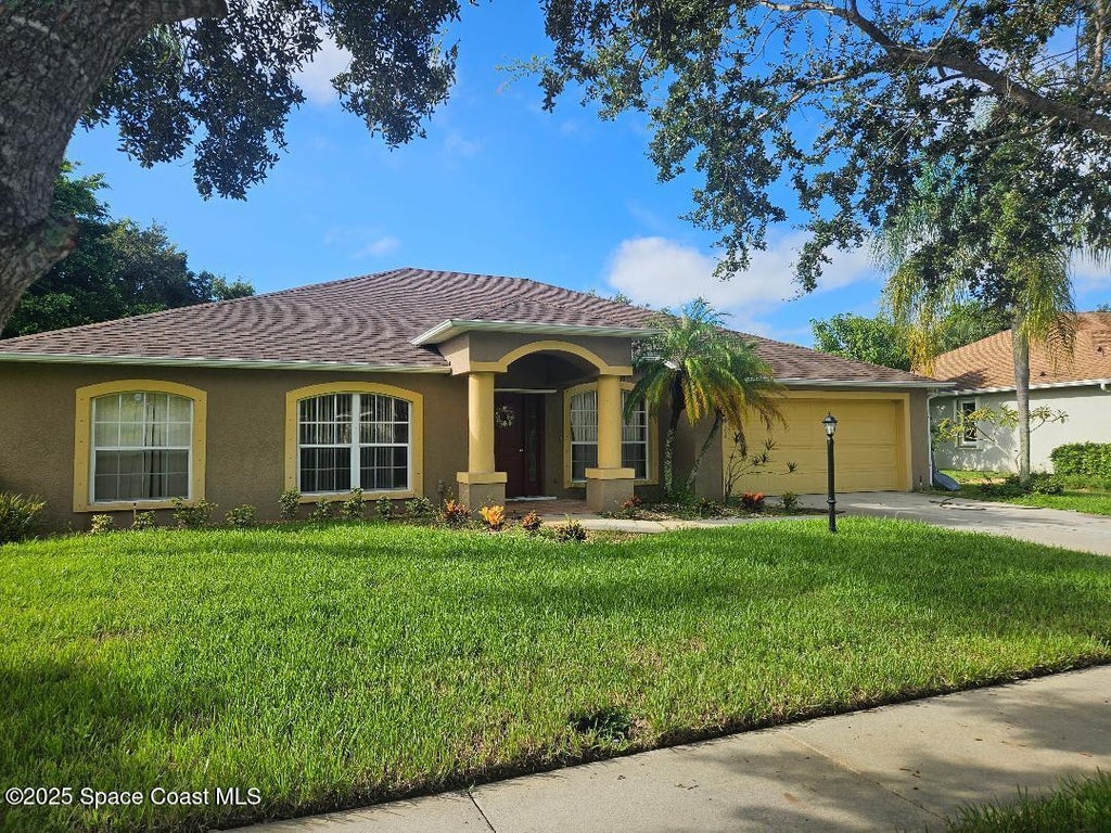 Lakefront home in the gated community of Forest Creek. 4 bedrooms, 3 full baths with a screen enclosed pool. Popular split floor plan for more privacy. Tile and wood plank flooring thru out. Kitchen with granite counters, stainless appliances, double pantry. Breakfast Nook with a pool view. Primary bath with soaking tub, walk in shower and double sinks. Interior freshly painted. New window treatments on all windows. Professionally cleaned. Pool service and Lawn service included in the rent. Small pet will be considered. Conveniently located to shopping , dining and work place. Approximately 20 minutes to the beach.