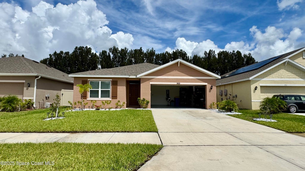 BUILT in 2023, this Single-Story, Concrete Block Constructed, Ranch-Style Home has a spacious open floor plan with 4Bedrooms, 2Full Baths, 2-Car Garage with a Beautiful Kitchen that includes Custom Cabinets, Stainless Steel appliances, walk-in pantry, a Large Island with a deep sink with Natural light throughout the Family/Living, Dining and Kitchen area. Smart home security system. Enjoy the Community POOL, playground and walking trail.