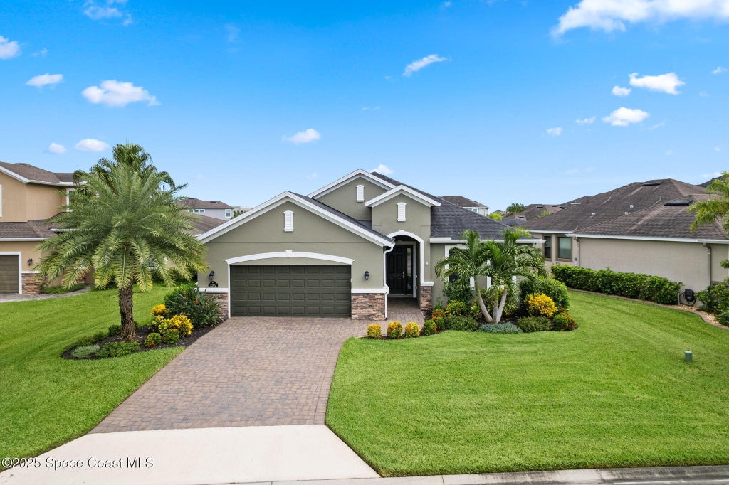 Welcome home to good vibes only! This 4-bed, 3.5-bath beauty mixes style, comfort, and upgrades that matter. The open floor plan flows into a dream kitchen with a big island perfect for brunch spreads, a late-night snack, or that second cup of coffee. Split bedrooms = privacy, while the walk-in closet keeps life organized. A mix of tile and carpeted flooring mean low maintenance, high style. Smart thermostat, brand-new 2-stage heat pump & A/C, tankless water heater, water softener, and reverse osmosis? This has it all! New exterior paint, storm shutters, and a 2-car garage keep things buttoned up, while the new systems let you live worry-free . Out back, relax in your covered screened patio overlooking sparkling lake views-aka your new favorite hangout spot. Bonus: A-rated schools, shopping, and dining just minutes away!