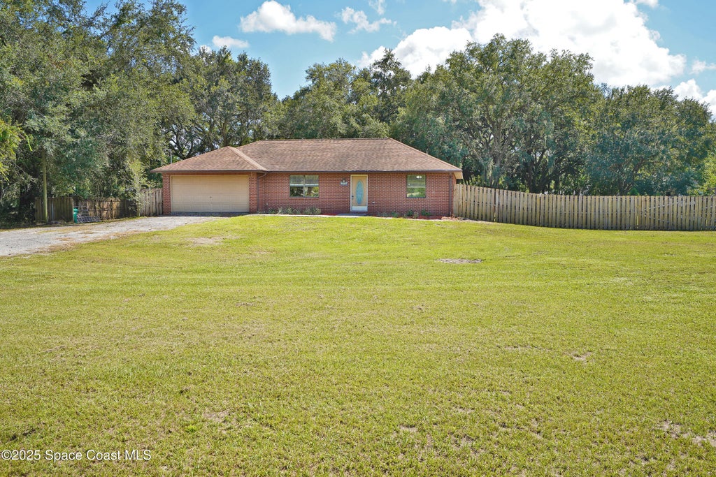 Entering this 1,322 sq. ft. home will be into a large, bright living room with vaulted ceiling and open plan environment. It has 3 bedrooms, 2 bathrooms, a dining area with view to the screened back porch and extra large yard beyond. There are beautiful tile floors throughout. The kitchen has stainless appliances with lots of dark wood cabinets, some with glass front doors spacious wood grain countertops. There's a separate laundry closet next to the kitchen and master bedroom. The huge back yard is surrounded by wood and chain-link fences and includes tall live oak trees, some with beautiful Spanish moss. This Canaveral Groves neighborhood is close to shopping, gas stations, and conveniently located just 20 minutes to Cape Canaveral beaches and 40 minutes to Orlando.