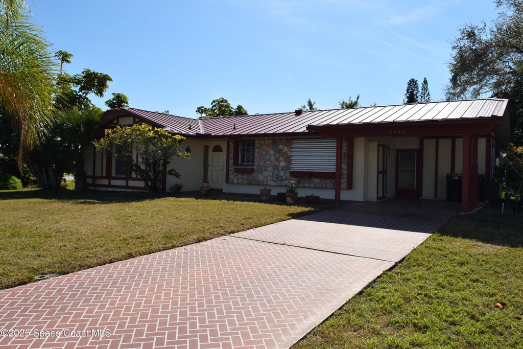 Great location of this 3 bedroom, 2 bath home in NE Palm Bay that sits on large corner lot with lawn care included!! Newer vinyl flooring and paint throughout. Fully equipped kitchen with stainless steel appliances. Separate living and dining room areas with sliders to enclosed porch/sunroom. Nice size laundry room with washer and dryer and storage area. 1 car carport with plenty of driveway parking. Home is close to Turkey Creek and it's sanctuary, library, rec center, main roads and shopping.