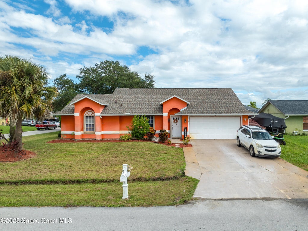 Beautiful split-plan pool home on a fully fenced corner lot in Palm Bay! Enjoy the screen-enclosed pool and patio, perfect for relaxing or entertaining. Inside, you'll find an open kitchen overlooking the family room, plus formal living and dining areas and vaulted ceilings that create an open, airy feel. The primary suite offers privacy from guest bedrooms. Additional features include fresh exterior paint, a new roof, 2019 A/C, hurricane shutters, and a storage shed. Conveniently located near shopping, dining, and I-95. Professional photos coming soon!