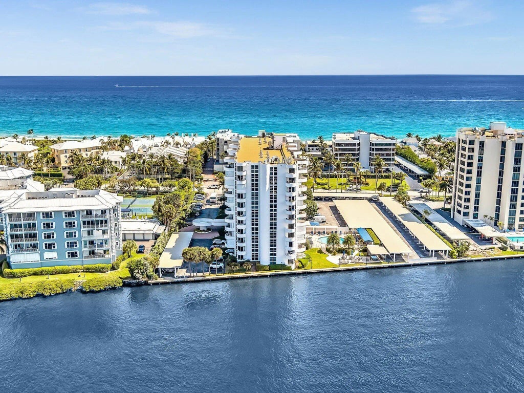 Paradise Found! Panoramic Ocean and Intracoastal Views from every room in this renovated 8th floor jewel! Watch the yachts go by from your private balcony - stroll to the beach. Elegant eat in kitchen features custom cabinetry with soft close drawers, marble countertops, and tray ceiling with recessed lighting. Throughout this waterfront residence you will find wood flooring in living areas, an updated coastal inspired primary bath, new A/C system (2023) and impact windows and sliders that create an abundance of natural light. Perfect as a full time or luxury vacation home. Coastal House is a boutique waterfront building of only 85 residences featuring deeded beach access, onsite management, door person, fitness room, and pool with barbecue pavilion overlooking the Intracoastal. Walk to the beach and bike to Trader's Joe's, Fresh Market, and all your favorite shops.