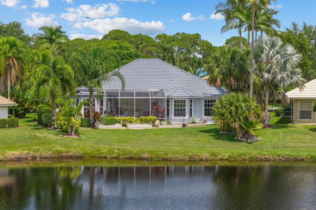 BRAND NEW AC IN AUGUST 2025. Welcome to Sanctuary Drive, of Country Club Estates. This home has a view! Sit on your patio and over look the water and the 18th fairway of St Lucie Trails Golf Course. Spacious open concept family room and granite kitchen with stainless appliances. Large primary suite with walk in shower, soaking tub, 2 walk in closets and dual sinks. 2 additional bedrooms and bath with 2 car garage. Upgrades include: Custom white Plantation shutters on windows, new garage door motor & chain w/ remotes, new 200amp service panel, Exterior of home has been painted including patio floor. Water heater new in 2021.