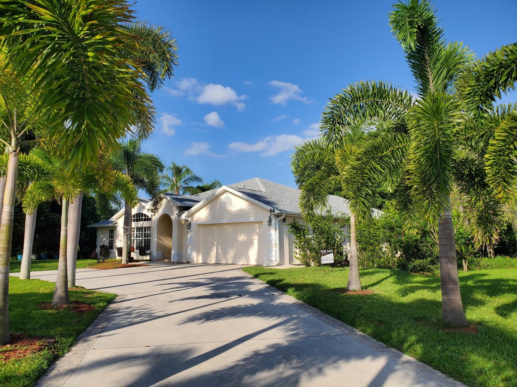 Welcome to our desirable, well-established Oleander Pines community! This is the home you've been waiting for! Breathtaking lakefront view from nearly every room, with a .282 oversized corned lot. This home features BRAND NEW ROOF (5/25), BRAND NEW A/C and HEATING SYSTEM (11/24), BRAND NEW RHEEM WATER HEAT UNIT (11/24). This CONCRETE BLOCK HOME has a beautiful porcelain tiles throughout the home. with a beautiful NEW KITCHEN with soft close doors & 36'' cabinets, 10+ ft. island and quartz countertop, stainless steel appliances (2024) with spacious open concept design perfect for gathering. The property is very private and surrounded by conservation land. The primary suite is HUGE with two very large walk-in closet and conveniently open to your private backyard oasis, with vaulted ceilingThe extended driveway surrounded by espectacular matured palm trees, with added bonus 5+ parking area ready for a new owner. Once you see it, you'll fall in love with your very own private oasis!. Minutes from the beach, shopping centers, restaurants, NO CDD FEES, LOW HOA, PAY COUNTY TAXES ONLY... DON'T MISS OUT! and make a appointment today!