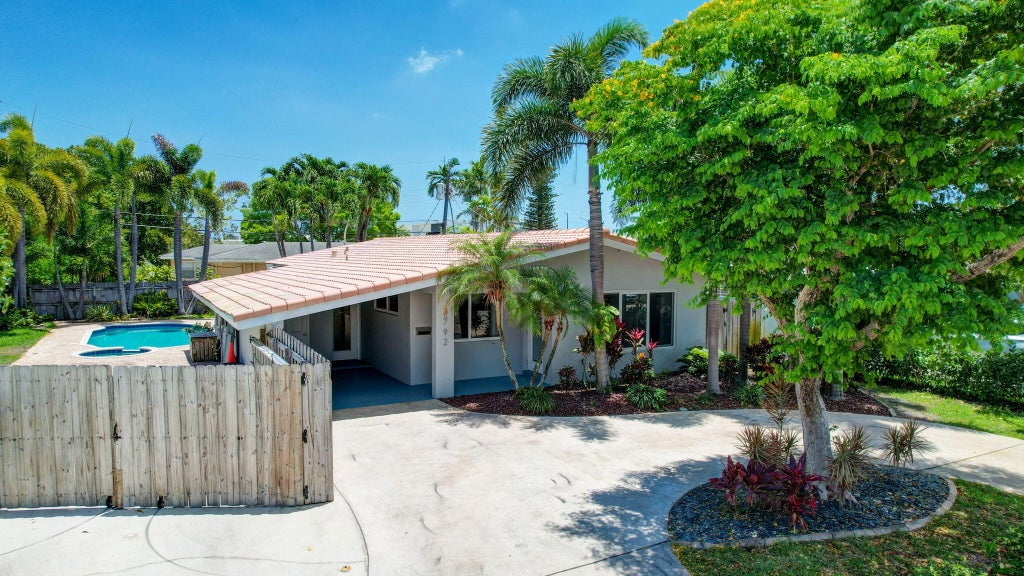 Welcome Home! Come see this beautiful 2 bedroom, 2 bath pool and spa home with a den on a corner lot. A beautiful entryway with a U-shaped driveway and carport. Enter into open space great for entertaining. The kitchen has gorgeous quartz countertops, white shaker cabinets and plenty of storage. It overlooks a private den by the pool. The home has tile and wood floors, impact rated windows, a home generator and an interior laundry closet. The en-suite master bedroom overlooks the pool and has a large walk-in closet. Enjoy the peaceful fully fenced in backyard complete with pool and jacuzzi. There's even a generator too! Bring your boat and keep it in the backyard. Move in or rent it immediately. This great home is walking distance to shopping, restaurants and more.