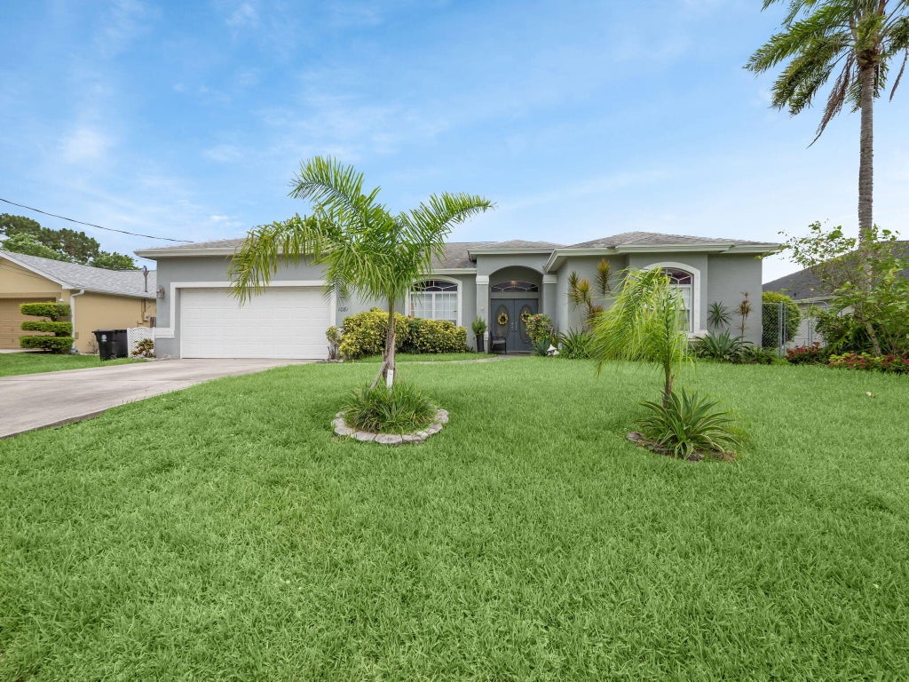This charming 4-bedroom, 2-bathroom home offers double-door entry that leads to a bright, open floor plan with 10-foot ceilings and a seamless flow between the living, dining, and family areas. The spacious kitchen features granite countertops, a center island, a breakfast bar, and an eat-in area, making it ideal for both everyday living and entertaining. The master suite boasts two large walk-in closets and direct access to the covered, screened-in patio. The master bathroom includes a Roman tub, separate shower, and dual vanities. Save money with the canal-fed sprinkler system. Located minutes from I-95 via Crosstown Parkway, this home offers easy access to shopping, dining, and entertainment.