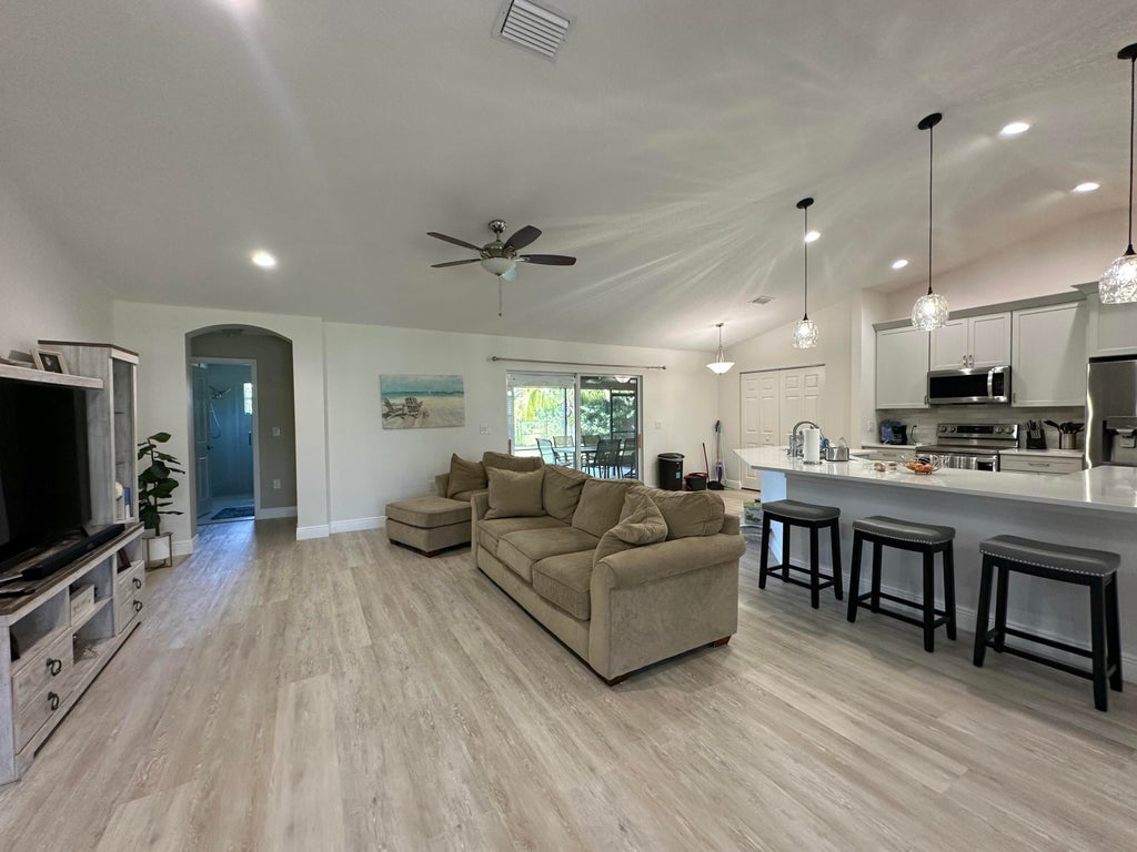 Beautifully renovated 4-bedroom, 3-bath rental home featuring luxury vinyl plank flooring, quartz countertops, and stainless steel appliances. The open-concept layout includes a modern kitchen with ample cabinetry and a large island, seamlessly flowing into bright living and dining areas. All bedrooms are spacious, with updated bathrooms throughout. The primary suite offers a generous open closet. Stylish, durable finishes make this home the perfect blend of comfort and modern living.
