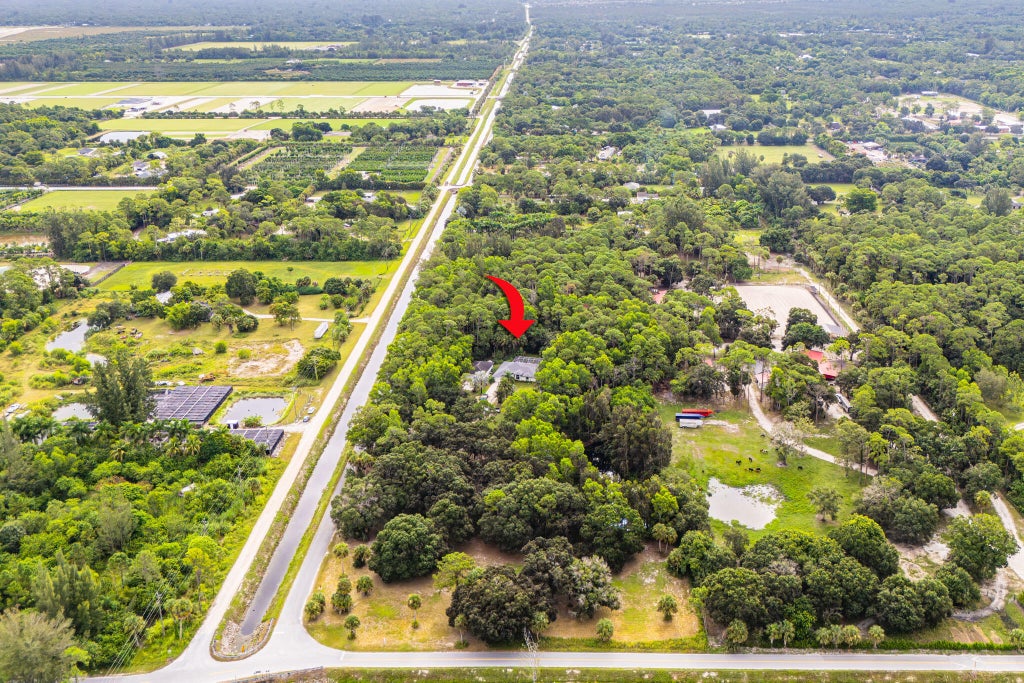 Welcome home to serenity! This turn-key home is resting on a 10 acre lot, featuring 3 bedrooms, 2 full baths, 2 car garage, 1,040 sqft detached CBS garage with two 9 ft garage entry doors in front and back. As you enter the lengthy driveway you are greeted by mature oaks and palms trees, a large pond with lots of fish, bringing you to this beautiful home with soaring high ceilings, a split floor plan, spacious open living areas offering an abundance of natural light with tiled floors throughout. The kitchen is bright with white cabinetry and grey countertops, modern stainless steel appliances, double door refrigerator with water and ice maker, large pantry and eat-in counter, a large window that opens to the spacious terrace overlooking the saltwater heated pool and greenery perfect for entertaining. Gorgeous primary suite featuring tiled floors, large walk-in closet, spectacular en suite bathroom with vanity, shower and soaking bath tub. Two spacious bedrooms with large walk-in closets, a cabana bathroom with access to and from the pool area. The home comes with accordion shutters and aluminum shutters. The screened covered patio brings you to a fenced backyard, property has 2 fire hydrants, peroxide water system, county water is available, A/C replaced 2020, water heater replaced 2022, and brand new roof 2025. This gem is tucked away in a superb quiet equestrian location of Loxahatchee Groves right off of Okeechobee Blvd and A Road with equestrian trails, shopping, fine dining, recreational parks, Lion Country Safari and Wellington's World Class National Polo Center, golf courses, beaches and much more just minutes away! Come see why Loxahatchee Groves is highly sought after and take in the fresh country air and peaceful sounds of nature. John Deere 4300 Diesel tractor with many attachments and hot tub are included. No HOA fees, high and dry corner lot and paved roads! Bring your toys, trailers, pets, horses, build stalls, an arena the possibilities are endless!!!