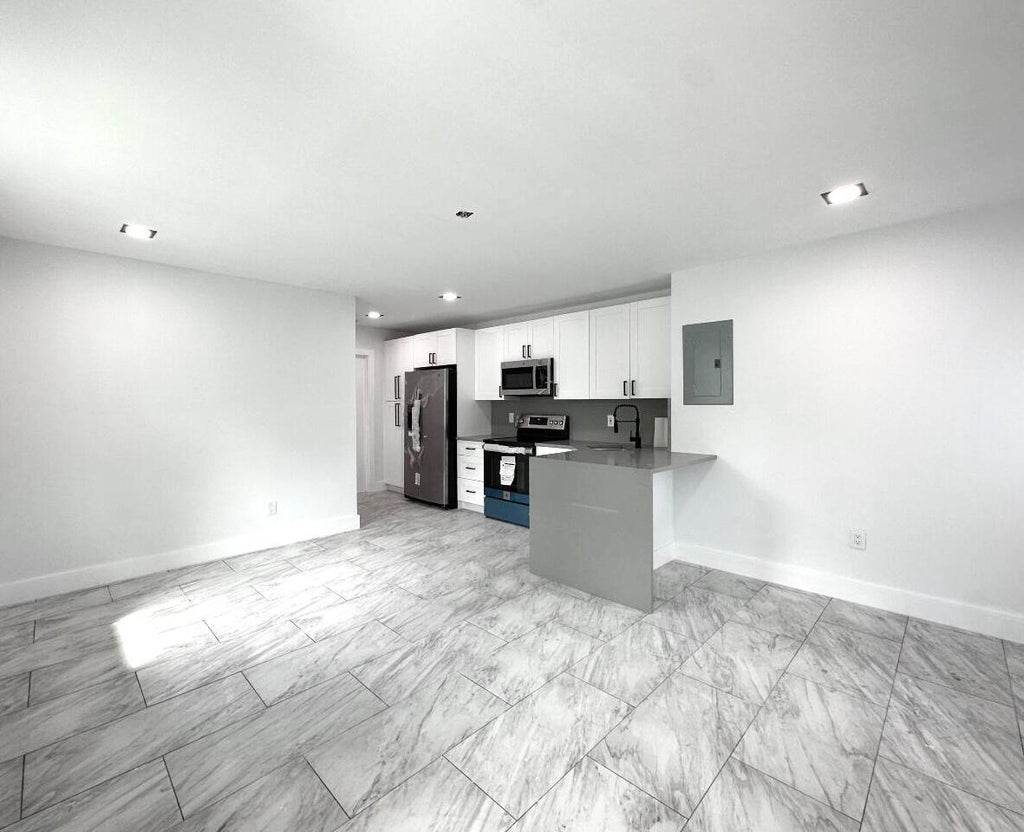 This modern 2-bedroom, 2-bathroom unit has been completely renovated with stylish finishes throughout. From the brand-new tile flooring to the hurricane impact windows, every detail has been thoughtfully designed. The open-concept kitchen and living area create a bright, spacious feel, with a split-bedroom layout offering plenty of privacy.Convenience is key with an included washer and dryer, private driveway parking, and a private backyard for outdoor enjoyment. The property is ideally located just east of I-95, only a few blocks north of Atlantic Blvd, and minutes from the beach, shopping, dining, and local schools. Water is included in the rent.