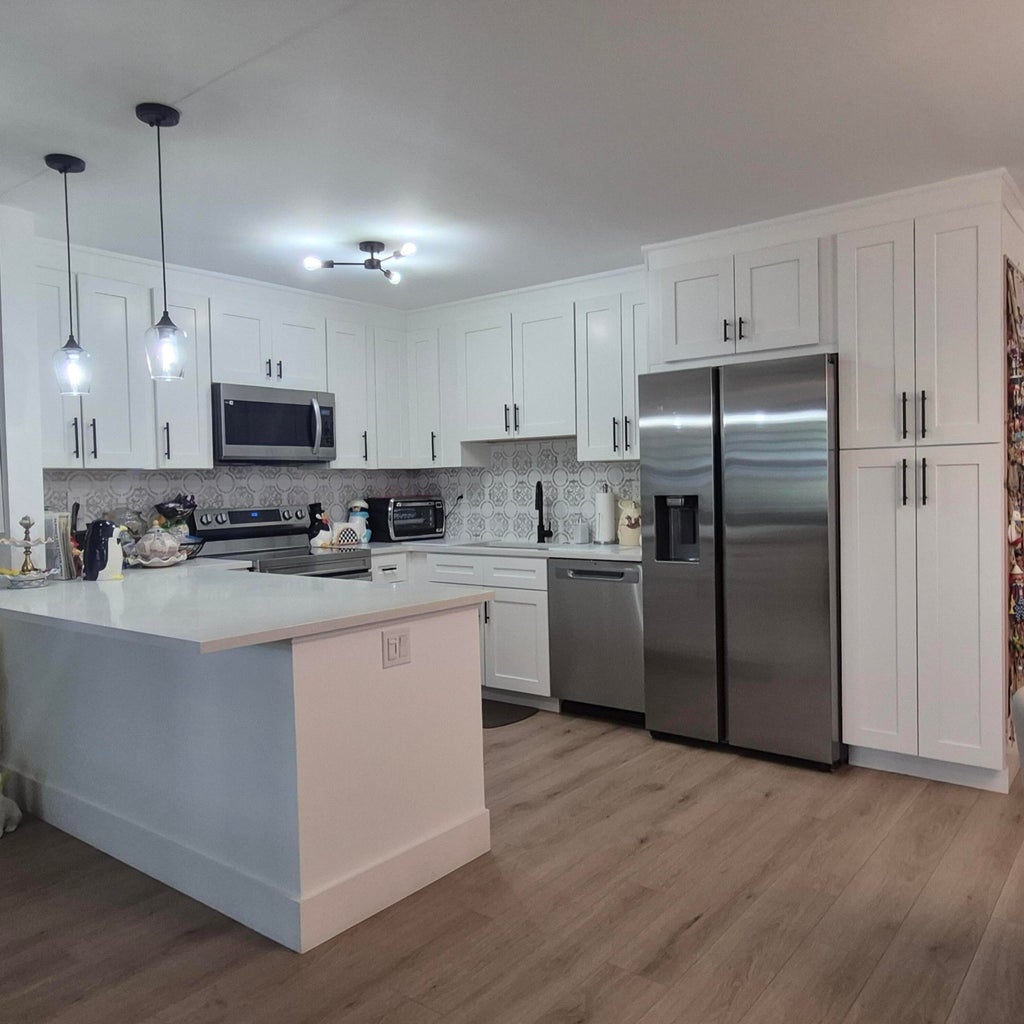 Must see this TOTALLY RENOVATED 1/1.5 first-floor condo close to parking with HURRICANE IMPACT WIDOWS AND FRONT DOOR! The beautifully redesigned kitchen opens to the living room and includes STAINLESS STEEL APPLIANCES, UPGRADED 42'' CABINETS WITH PULL-OUT SHELVES, QUARTZ COUNTER/TILED BACKSPLASH. Upgraded bathrooms include new cabinets/counters and NEW SHOWER ENCLOSURE in MBR. Interior features include VINYL FLOORS, NEW DOORS AND BASEBOARD, SLIDING DOORS IN MBR, PLANTATION SHUTTERS, NEW WASHER/DRIVER! Enclosed private patio. This active 55+ community includes a newly renovated clubhouse with impressive shows, exercise facilities, pools, tennis, 2 golf courses,2 on-site restaurants and more! Close to Atlantic Ave. stores, dining, beaches!